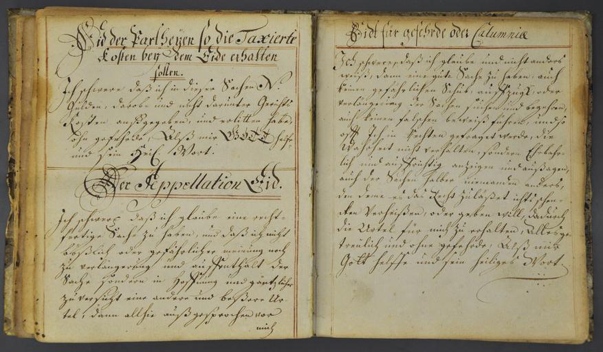 Keywords: Eidesformeln Mecklenburg-Guestrow 03.jpg Undatierte handschriftliche Einträge von Eidesformeln in einem Exemplar in Privatbesitz des Buchs <br /> Des Durchleuchtigsten Fürsten und Herrn/ Herrn Gustaff Adolphen/ Hertzogen zu Mecklenburg Cantzley Ordnung/ Sambt dem Käyserlichen Privilegio de non Appellando und einigen Fürstlichen Rescripten und Constitutionen Scheippel Güstrow 1669 Kanzleiordnung des Gustav Adolf Herzog von Mecklenburg-Güstrow 1633-1695 1 017155S links oben Eid der Partheyen so die Taxierte kosten bey dem Eide erhalten sollen Ich schwere daß ich in dieser Sache N Gülden darob- und nicht darunter Gerichts Kosten außgegeben und erlitten habe ohn gefehrde Alß mir GOTT helfe und sein Heil Wort siehe auch http //books google de/books id x9tDAAAAcAAJ pg PA27 links unten Der Appellation Eid Ich schwere daß ich glaube eine rechtfertige Sache zu haben und daß ich nicht bößlich oder gefährlicher meinung noch zu verlängerung und auffenthalt der Sache sondern in Hoffnung und gäntzlicher zuversicht eine andere und beßere Urtel dann allhie außgesprochen vor mich “ hier fehlt wohl ein Blatt Rest nach http //books google de/books id x9tDAAAAcAAJ pg PA27 zu erlangen apelliret und daß ich solche Appellation nicht vorsätzlich aufhalten sondern soviel mir möglichm zur Endschaft befördern will als mir Gott helfe und sein heiliges Wort rechts Eidt für gefehrde oder Calumniae Ich schwere daß ich glaube und nicht anderes weiß dann eine gute Sache zu haben auch keinen gefährlichen Schub auffzug oder verlängerung der Sachen suchen und begehren auch keinen falschen beweiß führen und so offt Ich in Rechten gefraget werde die Wahrheit nicht verhalten sondern Ehrbarlich und auffrichtig anzeigen und außagen auch der Sache halber niemanden anderes den deme es das Recht zuläßet nichts schenken Verheißen oder geben will dadurch die Urtel für mich zu erhalten Alles getreülich und ohne gefehrde Alß mir Gott helffe und sein heiliges Wort siehe auch http //books google de/books id x9tDAAAAcAAJ pg PA25 own 17th/18th century anonymous Book and manuscript is in the Public Domain by age Photograph is released into the Public Domain by the photographer Eidesformeln Mecklenburg-Güstrow Photos by User AndreasPraefcke |