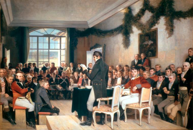 Keywords: Eidsvoll riksraad 1814 edit1.jpeg Levels adjustment - original appeared washed-out; this is my best guess from experience with paintings as to more correct colours Artwork Creator Oscar Wergeland Riksforsamlingen pÃ¥ Eidsvoll 1814 1885 Parliament of Norway Building Stortingsbygninge Oslo Norway Stortingsarkivet Archives of the Storting PD-old-100 Other versions original upload log page en wikipedia Eidsvoll_riksraad_1814 jpeg 2005-04-18 02 45 Leifern 460×330×8 127168 bytes <nowiki></nowiki> Eidsvold 1814 painting |