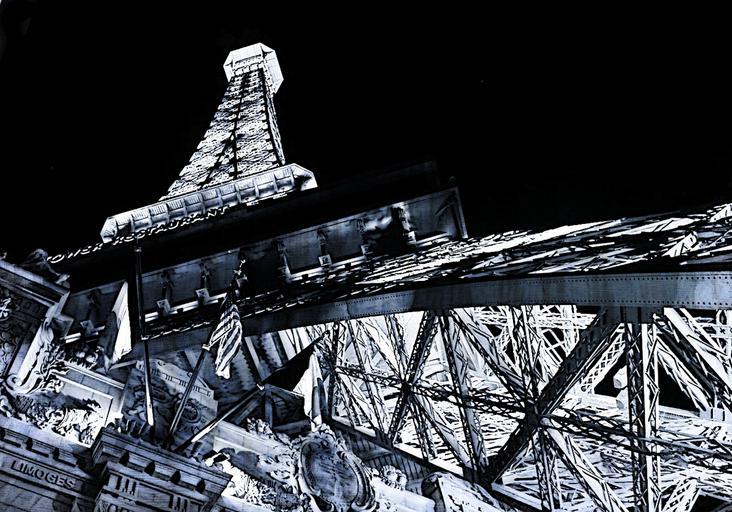 Keywords: eiffel tower building metal construction architecture technology night dark light digital art artwork graphic