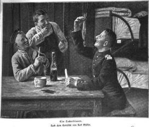 Keywords: Ein Leckerbissen.jpg de Ein Leckerbissen nach einem Gemälde von Karl Josef Müller 1903 https //archive org/stream/bub_gb_qkAgAQAAMAAJ page/n23/mode/2up Die Gartenlaube 1903 Unbekannt Nach einem Gemälde von Karl Josef Müller other versions PD-old-70 Karl Josef Müller Gartenlaube 1903 German soldiers in art |