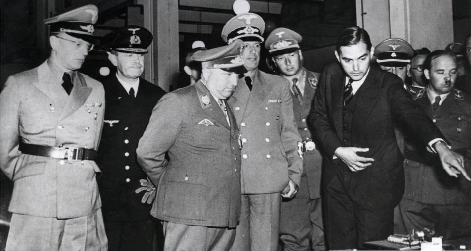 Keywords: Eindhoven 22081940.jpg nl Arthur Seyss-Inquart was een Oostenrijks jurist en nazi-politicus Foto Bezoek Seyss-Inquart aan Philips complex in gezelschap van Comm gen Fritz Schmidt en Minister Hans Fischböck Demonstratie van de maquette van het verlichtingsbedrijf Nederland Eindhoven 22 augustus 1940 de Vorstellung eines Beleuchtungsmodells Vlnr vordere Reihe Reichskommissar für die besetzten Niederlande Dr Seyss-Inquart Leiter der Deutschen Arbeitsfront Robert Ley Generalkommissar für Finanz und Wirtschaft Dr Hans Fischböck unbekannt Generalkommissar zur besonderen Verwendung Fritz Schmidt 1940-08-22 http //proxy handle net/10648/68bd085e-1ad9-102f-85b3-003048976d84 GaHetNa Nationaal Archief NL unknown photographer PD-EU-anonymous other versions Arthur Seyß-Inquart 19400822 Robert Ley 19400822 Hans Fischböck 19400822 Fritz Schmidt NSDAP 19400822 ImageNote 1 503 562 37 55 3661 1957 2 Dr Seyss-Inquart ImageNoteEnd 1 ImageNote 2 1007 668 46 37 3661 1957 2 dt Marineoffizier ImageNoteEnd 2 ImageNote 3 1693 782 41 41 3661 1957 2 Robert Ley ImageNoteEnd 3 ImageNote 4 1913 585 50 59 3661 1957 2 Dr Hans Fischböck ImageNoteEnd 4 ImageNote 5 3400 750 50 59 3661 1957 2 Fritz Schmidt ImageNoteEnd 5 |