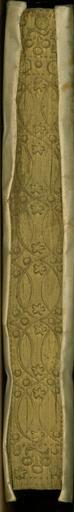 Keywords: Eine christliche Leichpredigt ... Geschehen vber der ... Leiche ... Vuilhelmi ... Bernhardts von Hutten ... So?nleins. Durch Melchior Bischoff ... Mit angehenckten Epitaphijs ... 1575. -Smal - Fore edge (C107bb84).jpg Style Centrepiece Floral; Caption Fore edge; Colour White / cream; Edge Gilt Gauffered exhibition history Decorative Technique Tooled in gold; Cover Material Parchment limp Preceded by a leaf with a manuscript inscription by Bernhardt von Hutten to Baron Gundacker von Starhemberg dated 1580 and with a painting of the latter ™s arms In a contemporary German gold-tooled vellum binding Edges of covers protrude over fore edge Traces of 2 pairs of green ties object history Text 1577; Unspecified; Unspecified object type Cc-zero place of creation Binding Germany place of discovery Unspecified British Library image http //www bl uk/catalogues/bookbindings/LargeImage aspx RecordId 020-000019275 ImageId ImageId 57615 Copyright BL Eine christliche Leichpredigt Geschehen vber der Leiche Vuilhelmi Bernhardts von Hutten So nleins Durch Melchior Bischoff Mit angehenckten Epitaphijs 1575 Smalchaldiae Schmalkalden Michael Schmuck imprimebat 1577 bound with another vol Uploaded with GWToolset Eine christliche Leichpredigt Geschehen vber der Leiche Vuilhelmi Bernhardts von Hutten So nleins Durch Melchior Bischoff Mit angehenckten Epitaphijs 1575 Smal - Fore edge C107bb84 http //www webarchive org uk/bldatasets/bindings/c108bb84fe jpg Bookbinding 16th-century bookbinding British Library Bookbindings Eine christliche Leichpredigt ... Geschehen vber der ... Leiche ... Vuilhelmi ... Bernhardts von Hutten ... So?nleins. Durch Melchior Bischoff ... Mit angehenckten Epitaphijs ... 1575. -Smal - Fore edge (C107bb84).jpg Style Centrepiece Floral; Caption Fore edge; Colour White / cream; Edge Gilt Gauffered exhibition history Decorative Technique Tooled in gold; Cover Material Parchment limp Preceded by a leaf with a manuscript inscription by Bernhardt von Hutten to Baron Gundacker von Starhemberg dated 1580 and with a painting of the latter ™s arms In a contemporary German gold-tooled vellum binding Edges of covers protrude over fore edge Traces of 2 pairs of green ties object history Text 1577; Unspecified; Unspecified object type Cc-zero place of creation Binding Germany place of discovery Unspecified British Library image http //www bl uk/catalogues/bookbindings/LargeImage aspx RecordId 020-000019275 ImageId ImageId 57615 Copyright BL Eine christliche Leichpredigt Geschehen vber der Leiche Vuilhelmi Bernhardts von Hutten So nleins Durch Melchior Bischoff Mit angehenckten Epitaphijs 1575 Smalchaldiae Schmalkalden Michael Schmuck imprimebat 1577 bound with another vol Uploaded with GWToolset Eine christliche Leichpredigt Geschehen vber der Leiche Vuilhelmi Bernhardts von Hutten So nleins Durch Melchior Bischoff Mit angehenckten Epitaphijs 1575 Smal - Fore edge C107bb84 http //www webarchive org uk/bldatasets/bindings/c108bb84fe jpg Bookbinding 16th-century bookbinding British Library Bookbindings |