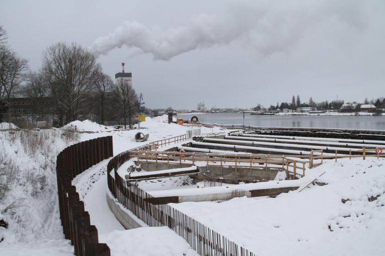 | Keywords: Einlaufbauwerk Winter Weserkraftwerk.JPG en View on the construction site of the inlet structure of the hydroelectric power plant on the river Weser in Bremen Germany during a winter recess of the constructional measures de Blick auf das entstehende Einlaufbauwerk des Weserkraftwerks Bremen während einer winterlichen Unterbrechung der Bauarbeiten own Florean Fortescue 2010-01-11 Inlet scruture of the hydroelectric power plant in Bremen Cc-zero | ||||