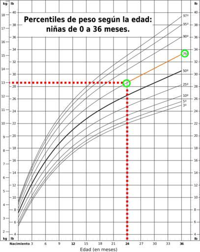 Keywords: Ejemplo de uso de una tabla de percentiles.svg en Weight-for-age Percentils Girls birth to 36 months de Perzentilenkurve für das Gewicht bezogen auf das Alter für Mädchen von der Geburt bis zum Alter von 36 Monaten es Uso de la tabla de percentiles Percentiles_peso_bebes_niñas svg 2009-04-02 19 50 UTC Percentiles_peso_bebes_niñas svg Weight-for-age-girls svg derivative work FischX <span class signature-talk >talk</span> Weight-for-age-girls jpg National Center for Health Statistic 2000 derivative work Tartaglia <span class signature-talk >talk</span> derivative work Tartaglia <span class signature-talk >talk</span> Ejemplo de uso de una tabla de percentiles png Se resaltan algunos valores para mostrar su uso Tartaglia Percentiles_peso_bebes_niñas svg PD-USGov PD-USGov-HHS-CDC original upload log This image is a derivative work of the following images File Percentiles_peso_bebes_niñas svg licensed with PD-USGov PD-USGov-HHS-CDC 2009-04-02T18 11 39Z Tartaglia 632x794 72894 Bytes <nowiki>Corrección de errores</nowiki> 2009-04-02T16 53 00Z Tartaglia 632x794 76141 Bytes <nowiki>Corrección de errores</nowiki> 2009-04-02T16 48 18Z Tartaglia 632x796 76096 Bytes <nowiki> en Weight-for-age Percentils Girls birth to 36 months de Perzentilenkurve für das Gewicht bezogen auf das Alter für Mädchen von der Geburt bis zum Alter von 36 Monaten es Perce</nowiki> Uploaded with derivativeFX Quantiles |