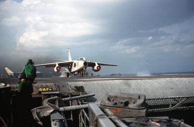 Keywords: EKA-3B launch USS America (CVA-66) 1968.jpeg A U S Navy Douglas EKA-3B Skywarrior BuNo 147663 of airborne early warning squadron VAW-13 Det 66 Zappers Carrier Air Wing Six CVW-6 is launched from the aircraft carrier USS America CVA-66 off Norfolk Virginia USA on 10 January 1968 The America had just completed a Selected Restricted Availability SRA at the Norfolk Naval Shipyard from 6 October 1967 to 8 January 1968 The next aircraft to be lauched is a North Americcan RA-5C Vigilante BuNo 149291 of heavy reconnaissance squadron RVAH-13 Bats This arcraft was originally delivered as an A-5A nuclear bomber and converted to an RA-5C It was retired to the MASDC as 4A0008 on 15 October 1970 U S DefenseImagery http //www defenseimagery mil photo VIRIN DN-ST-88-00747 http //www defenseimagery mil/imagery html a search s DN-ST-88-00747 guid b1231288f3abd085e7c3950ae643bfd88ccfeca8 1968-01-10 USN PD-USGov-Military-Navy Douglas EKA-3B Skywarrior Aboard USS America CV-66 Electronic Attack Squadron 130 United States Navy Reconnaissance Heavy Attack Squadron 13 United States Navy |