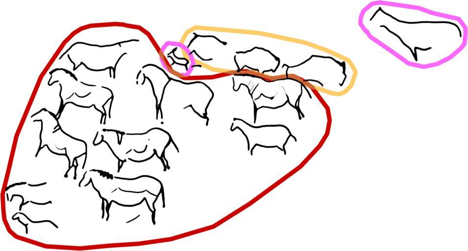 Keywords: Ekain.png Asociación de animales en el gran panel de la Cueva de Ekaín Cestona Guipúzcoa España según el paradigma de Leroi-Gourhan own 2006-06 José-Manuel Benito Locutus Borg horses in prehistoric art Drawings of pictographs Ekain Cave