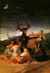 Keywords: El Aquelarre (1797-1798).jpg Artwork creator Francisco de Goya y Lucientes 1797-1798 Oil on canvas cm 44 31 Institution Museo Lázaro Galdiano Madrid object history credit line accession number http //cgfa sunsite dk/goya/goya38 jpg PD-Art PD-Old PD-old-100 Witches' Sabbath Goya |