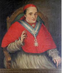 Keywords: El cardenal Francisco Javier Cienfuegos Jovellanos (Universidad de Sevilla).jpg El retratado que fue arzobispo de Sevilla cardenal y rector de la Universidad de Sevilla España aparece retratado con indumentaria eclesiástica y sentado en actitud de bendecir con su mano derecha Y viste una muceta roja sobre una alba blanca y lleva varias medallas 1819 oil canvas Size cm 80 103 Institution Universidad de Sevilla http //www patrimonioartistico us es/objeto jsp id 775 tipo v elto 0 buscando true repetir true object history exhibition history credit line accession number 0773-00-REC-PINT http //www patrimonioartistico us es/objeto jsp id 775 tipo v elto 0 buscando true repetir true PD-old-100 Uploaded with UploadWizard Francisco Javier Cienfuegos Jovellanos Colección Galería de Retratos de Rectores Universidad de Sevilla José María Arango 1819 paintings |