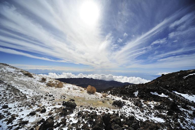 Keywords: el deep volcano located sky mountain sun cold snow summit sunbeam mountain landscape lighting winter rock landscape canary islands cliff blue