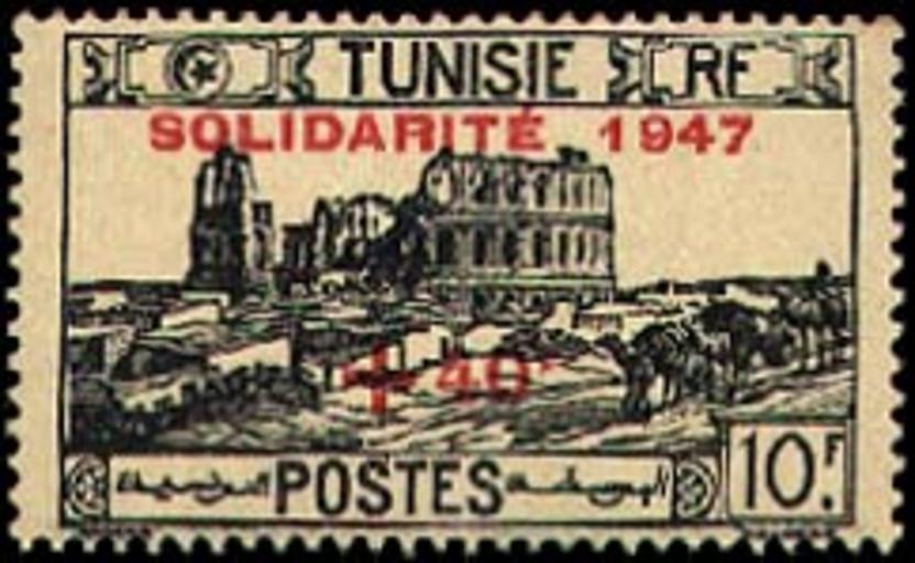 Keywords: El Djem Amphitheatre Stamp in 1947 - Tunisia.jpg en El_Djem_Amphitheatre_Stamp_in_1947_-_Tunisia fr L amphitheatre d El Jem dans un timbre de 1947 Tunisie ar طابع بريدي حول مسرح الجم بتونس 1947 http //www tunisia-stamps tn/arabic/1947/f0457 htm Henri Dabadie 1867-1949 1947-06-16 PD-Tunisia Stamps of Tunisia 1947 Amphitheatre of El Jem |