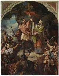 Keywords: El rey Don Pelayo en Covadonga (Museo del Prado).jpg El lienzo representa la proclamación de Don Pelayo 737 como rey de Asturias en Covadonga y el inicio de la Reconquista de España por los cristianos del norte de la PenÃnsula Ibérica 1855 oil canvas Size cm 280 358 Institution Museo del Prado Depositado en la BasÃlica de Santa MarÃa la Real de Covadonga España https //www museodelprado es/coleccion/obra-de-arte/don-pelayo-en-covadonga/e19ed15a-878d-47f7-aef6-c20229cbea21 searchid 4bafe003-a5e9-10d8-e1d9-d2ec01c103d0 object history exhibition history credit line accession number P06272 https //content2 museodelprado es/imagenes/Documentos/imgsem/e1/e19e/e19ed15a-878d-47f7-aef6-c20229cbea21/ce1fc6e1-764e-4946-869f-e31ea135c1d6 jpg PD-old-100 Pelayo I of Asturias Paintings by Luis de Madrazo Paintings by Luis de Madrazo in the Prado Museum Spanish 19th-century paintings in the Museo del Prado Interior of Basilica of Covadonga Uploaded with UploadWizard 1855 paintings in Spain |