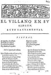 Keywords: El villano en su rincón (auto sacramental).jpg es Portada de José de Valdivieso http //alfama sim ucm es/dioscorides/consulta_libro asp ref B18692369 idioma 0 «El villano en su rincón Auto sacramental» en Doce autos sacramentales y dos comedias divinas Toledo Juan Ruiz; a costa de Martín Vázquez de la Cruz 1622 fols 1-12 http //cisne sim ucm es/record b1869236~S6 spi Ficha catalográfica en la biblioteca digital de la Universidad Complutense de Madrid <br><br>Leyenda<br>El villano en su / rincón / Acto sacramental / Figuras / El Apetito de villano / El Gusto de villano / La razón de villana / Rey divino de cazador / Rigor de cazador / Amor de cazador / El villano con gabán / Músicos // Sale el Apetito de villano // Apet Gusto tacto olfato oído / irascible razón vista / levantaos mirad que el sol/ pide al alba la camisa / Ved que la etiópica noche/ para acostarse se quita/ el apretador de estrellas / que es aunque morena rica / Los señores se desnudan / hora es de vestirse el día / que son siempre los señores/ antípodas de la vida / Mirad que las pardas nubes / de oro y nácar se perfilan / y las avecillas dan/ al alba los buenos días / Vaya la vista a segar/ las mal granadas espigas / que al tiempo de la cosecha / las tiene de hallar vacías / El tacto que es un grosero / uvas vendimie de espinas http //alfama sim ucm es/dioscorides/temp/394064151_10 jpg Juan Ruiz impresor ; José de Valdivieso autor 1622 Spain in the 1620s 1622 books Spanish language literature Theatre of Spain El villano en su rincón PD-old-100 ImageNote 1 6 225 591 613 612 889 2 El villano en su / rincón / Acto sacramental / Figuras / El Apetito de villano / El Gusto de villano / La razón de villana / Rey divino de cazador / Rigor de cazador / Amor de cazador / El villano con gabán / Músicos // Sale el Apetito de villano // Apet Gusto tacto olfato oído / irascible razón vista / levantaos mirad que el sol/ pide al alba la camisa / Ved que la etiópica noche/ para acostarse se quita/ el apretador de estrellas / que es aunque morena rica / Los señores se desnudan / hora es de vestirse el día / que son siempre los señores/ antípodas de la vida / Mirad que las pardas nubes / de oro y nácar se perfilan / y las avecillas dan/ al alba los buenos días / Vaya la vista a segar/ las mal granadas espigas / que al tiempo de la cosecha / las tiene de hallar vacías / El tacto que es un grosero / uvas vendimie de espinas ImageNoteEnd 1 |
