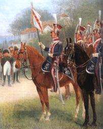 Keywords: Elba Squadron of 1er régiment de chevau-légers lanciers polonais de la Garde impériale.PNG En Elba Squadron of the 1st Light Horse Regiment Polish Lancers of the Imperial Guard L'Armée du Duché de Varsovie par Jan V Chelminski Paris 1913 painting Jan Chełmiński 1851-1925 < 1925 PD-Art Polish troops of the Grande Armée Paintings of Napoleon I Jan Chełmiński Elba Chevau-légers and Chasseurs Lanciers polonais de la Garde impériale Flags of Elba |