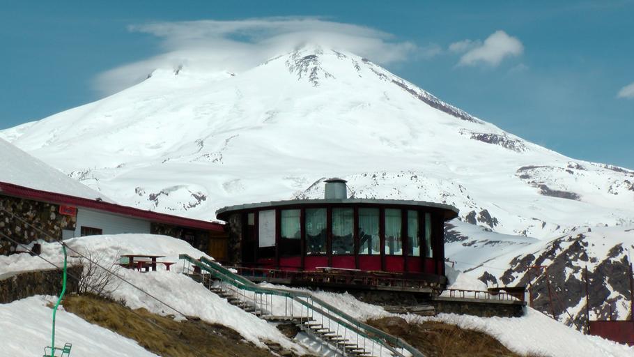 Keywords: elbrus mountains the caucasus kabardino-balkaria mountaineering climbing track snow sun good weather landmarks flags clouds rocks height northern caucasus nature landscape cheget cafe ah