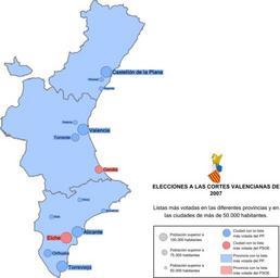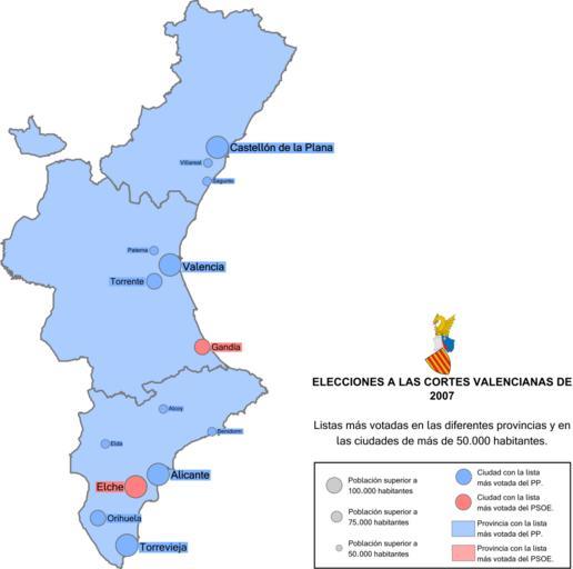 Keywords: Elecciones autonómicas Cortes Valenciana 2007.svg es Mapa de provincias y principales ciudades valencianas con el resultado de las elecciones a las Cortes Valencianas Corts Valencianes del 2007 own Xinese-v Libre Maps of the Land of Valencia Politics of the Land of Valencia |