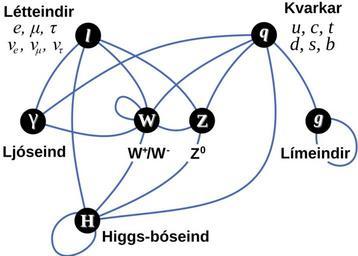 Keywords: Elementary particle interactions (is).svg A diagram summarizing the tree-level interactions between elementary particles described in the Standard Model Vertices darkened circles represent types of particles and edges blue arcs connecting them represent interactions that can take place The organization of the diagram is as follows the top row of vertices leptons and quarks are the matter particles; the second row of vertices photon W/Z gluons are the force mediating particles; and the bottom row is the Higgs boson Elementary_particle_interactions svg 2009-03-10 03 28 UTC Elementary_particle_interactions svg en User TriTertButoxy User Stannered derivative work BiT <span class signature-talk >talk</span> Translated lables into Icelandic BiT Elementary_particle_interactions svg PD-user-en PD-user-w original upload log This image is a derivative work of the following images File Elementary_particle_interactions svg licensed with PD-user-en PD-user-w 2008-02-24T15 59 55Z Stannered 775x555 35614 Bytes <nowiki>adding W self-interaction</nowiki> 2008-02-03T17 52 30Z Stannered 775x555 37690 Bytes <nowiki>MediaWiki has no unicode TNR equivalent when will they install FreeSerif </nowiki> 2008-02-03T17 51 31Z Stannered 775x555 22110 Bytes <nowiki> A diagram summarizing the tree-level interactions between elementary particles described in the Standard Model Vertices darkened circles represent types of particles and edges blue arcs connec</nowiki> Uploaded with derivativeFX Standard Model physics Icelandic language Higgs boson |