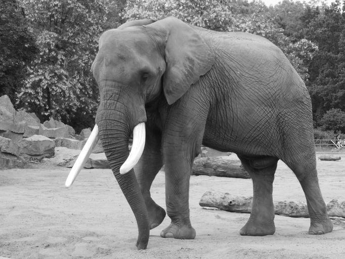 Keywords: elephant black and white animal portrait black white pachyderm creature zoo mammal