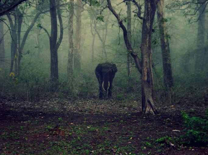 Keywords: elephant the elephant mammal animal tusks wildlife wild national park safari wilderness india nagarhole mist dawn morning mist morning fog