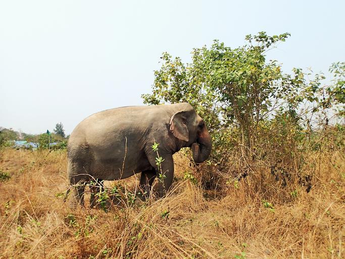 Keywords: elephant meadow dry grass animal thailand nature asia reserve tree thai