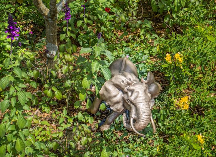 Keywords: elephant statue sculpture green garden flowers botany nature
