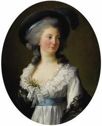 Keywords: Elisabeth Louise Vigée-LeBrun - Portrait de Madame de Moreton, La Comtesse de Moreton de Chabrillan.jpg Artwork Creator Elisabeth Vigée-Lebrun Marie-Elisabeth Olive née Frottier de la Coste-Messeliére Comtesse de Moreton de Chabrillon 1761-1807 1782 Oil on canvas in 27 20 object history Marie-Elisabeth Olive née Frottier de la Coste-Messeliére Comtesse de Moreton de Chabrillon 1761-1807 France;<br/>Acquired by descent to the family;<br/>Purchased by Edouard Noetzlin Paris France 1920s;<br/>Private Collection Paris France;<br/>With dealer Frederick Mont Inc New York in 1950;<br/>Sold Christie's London November 29 1974 lot 58;<br/>Newhouse Galleries New York NY;<br/>Mr and Mrs F Howard Walsh Fort Worth Texas;<br/>Walsh Family Art Trust credit line Signed E L LeBrun and dated 1782 at lower right see source accession number http //fineart ha com/c/item zx saleNo 638 lotNo 24064 Heritage Auctions <gallery>Izabela Lubomirska jpg supposed to be a portrait of Izabela Lubomirska The Blue Marquise</gallery> PD-old-100 DEFAULTSORT 1782; Mme de Moreton or Izabela Lubomirska Images from Heritage Auctions Elisabeth_Louise_Vigée-LeBrun Portrait paintings by Élisabeth Vigée-Lebrun French nobility Female portraits by Élisabeth Vigée-Lebrun 18th-century portrait paintings location missing 1782 oil on canvas paintings 1782 portrait paintings from France 18th-century oil oval portraits of women at half length Feathered headdresses in art female Female hair fashion in art Females with blue belts in art Females with white dresses in art Muslin dresses Portrait paintings of females with flowers Portrait paintings of women wearing hats Portraits with shawls Three-quarter view portrait paintings of women Women facing left and looking right in art 1780s dresses |