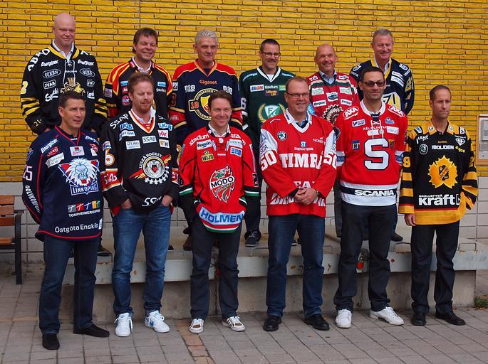 Keywords: Elitserien coaches 2010.jpg en Coaches of the Swedish Elitserien league Top row from left Roger Melin - AIK Niklas Czarnecki - Brynäs Hardy Nilsson - Djurgården Tommy Samuelsson - Färjestad Kent Johansson - Frölunda Jan Karlsson - HV71 Bottom row from left Hans Särkijärvi - Linköping Jonas Rönnqvist - Luleå Charles Berglund - Modo Per-Erik Johnsson - Timrå Peter Popovic - Södertälje Anders Forsberg - Skellefteå own Armigo 2010-09 Ice hockey coaches from Sweden September 2010 in Sweden Charles Berglund Roger Melin Hardy Nilsson 2010-2011 Swedish Elite League season People of Sweden in 2010 September 2010 photographs Hans Särkijärvi Kent Johansson ice hockey Tommy Samuelsson Peter Popovic Per-Erik Johnsson Anders Forsberg ice hockey coach Jan Karlsson ice hockey born 1958 Niklas Czarnecki Jonas Rönnqvist Cc-zero |