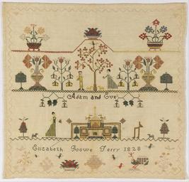 Keywords: Elizabeth Rowe Terry, American - Sampler - Google Art Project.jpg American 4091368 Elizabeth Rowe Terry /collection/cooper-hewitt-national-design-museum/artwork/sampler-elizabeth-rowe-terry-american/6717268/ 75169 Elizabeth Rowe Terry American /artist/elizabeth-rowe-terry/6826643/ 6826643 /collection/cooper-hewitt-national-design-museum/ Cooper-Hewitt National Design Museum 3644669 http //www cooperhewitt org/ /collection/cooper-hewitt-national-design-museum/artwork/sampler-elizabeth-rowe-terry-american/6717268/ 1828 1828 Medium silk embroidery on linen foundationTechnique embroidered in cross and eyelet stitches on plain weave foundation By 1941 Mrs Henry E Coe Eva Johnston Coe 1941 Museum for the Arts of Decoration of the Cooper Union 390 6717268 False 1828 1941-69-107 http //collection cooperhewitt org/view/objects/asitem/id/75169 Bequest of Mrs Henry E Coe Sampler 1820 1830 w410 x h390 cm 1828 False 1 04065040650407 Object sampler-elizabeth-rowe-terry-american Sampler s 410 Ethel Stanwood Bolton and Eva Johnston Coe American Samplers Boston The Massachusetts Society of the Colonial Dames of America 1921 229 H x W 39 x 41 cm 15 3/8 x 16 1/8 in New York New York Museum of Early American Folk Arts Collector's Choice Part II May 12 to July 5 1970 Elizabeth Rowe Terry 1828 Medium silk embroidery on linen foundationTechnique embroidered in cross and eyelet stitches on plain weave foundation By 1941 Mrs Henry E Coe Eva Johnston Coe 1941 Museum for the Arts of Decoration of the Cooper Union special url_id NwE1g3naOOzHhg PD-old-100 Google Art Project works by Elizabeth Rowe Terry Textiles in the Cooper “Hewitt Smithsonian Design Museum 1820s samplers Google Art Project works in Cooper-Hewitt Smithsonian Design Museum 1828 works |