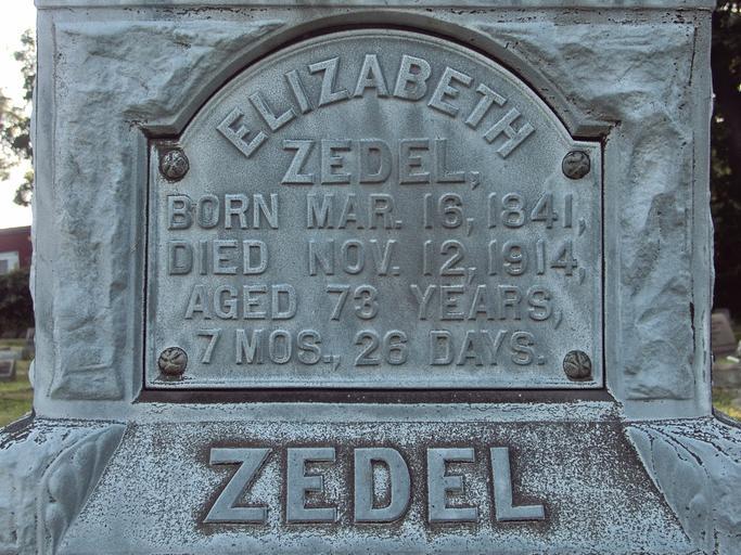 Keywords: Elizabeth Zedel Monument, St. Paul’s Lutheran Cemetery (Mount Oliver), 2015-08-23, 02.jpg Zinc monument in St Paul ™s Lutheran Cemetery Mount Oliver Pennsylvania 2015-08-23 own Cbaile19 cc-zero St Paul's Lutheran Cemetery Mount Oliver Pennsylvania Zinc grave monuments Uploaded with VicuñaUploader |