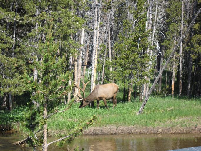 Keywords: elk woods animal mammal park antlers outdoors wildlife bull wild trees grass pine deer nature meadow