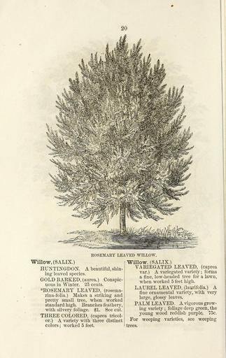 Keywords: Ellwanger and Barry's descriptive catalogue of ornamental trees and shrubs, roses, flowering plants, etc., etc., etc (15814961094).jpg 20 <br> ROSEMARY LEAVED WILLOW <br> Willow SALIX <br> HUNTINGDON A beautiful shin- <br> ing leaved species <br> GOLD BARKED aurea Conspic- <br> uous in Winter 25 cents <br> ROSEMARY LEAVED rosema- <br> rina-folia Makes a striking and <br> pretty small tree when worked <br> standard high Branches feathery <br> with silvery foliage 1 See cut <br> THREE COLORED caprea tricol- <br> or A variety with three distinct <br> colors ; worked 5 feet <br> Willow SALIX <br> VARIEGATED LEAVED caprea <br> var A variegated variety ; forms <br> a fine low-headed tree for a lawn <br> when worked 5 feet high <br> LAUREL LEAVED laurifolia A <br> fine ornamental variety with very <br> large glossy leaves <br> PALM LEAVED A vigorous grow- <br> ing variety ; foliage deep green the <br> young wood reddish purple 75c <br> For weeping varieties see weeping <br> trees 42747607 136502 68419 Page 20 Text http //www biodiversitylibrary org/page/42747607 1868 10 1080/00222930308678875 Ellwanger Barry ; Henry G Gilbert Nursery and Seed Trade Catalog Collection ; Mount Hope Nurseries NameFound Salix NameConfirmed Salix Au069 EOLID 65046 Biodiversity Heritage Library Ellwanger Barry's descriptive catalogue of ornamental trees and shrubs roses flowering plants etc etc etc Garden Stories Catalogs Ellwanger Barry Nurseries Horticulture Nursery stock Ornamental trees Plants Shrubs U S Department of Agriculture National Agricultural Library bhl page 42747607 dc identifier http //biodiversitylibrary org/page/42747607 Rosemary leaved willow bhlGardenStories BHLinbloom ellwanger barry nurseries horticulture u s department of agriculture national agricultural library bhlgardenstories bhlinbloom Information field Flickr posted date ISOdate 2015-02-03 CC-BY-2 0 BioDivLibrary https //flickr com/photos/61021753 N02/15814961094 2015-08-25 01 53 07 cc-by-2 0 PD-old-70-1923 Ellwanger Barry's descriptive catalogue of ornamental trees and shrubs roses flowering plants etc etc etc Photos uploaded from Flickr by Fæ using a script |