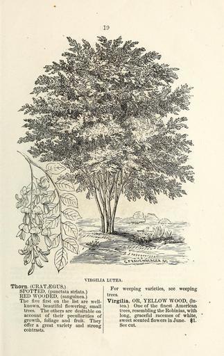Keywords: Ellwanger and Barry's descriptive catalogue of ornamental trees and shrubs, roses, flowering plants, etc., etc., etc (16437484765).jpg 19 <br> VIKGILIA LUTEA <br> Thorn CRATAEGUS <br> SPOTTED punctata striata <br> RED WOODED sanguinea <br> The five first on the list are well- <br> known beautiful flowering small <br> trees The others are desirable on <br> account of their peculiarities of <br> growth foliage and fruit They <br> offer a great variety and strong <br> contrasts <br> For weeping varieties see weeping <br> trees <br> Virgilia OR YELLOW WOOD ln- <br> tea One of the finest American <br> trees resembling the Robinias with <br> long graceful racemes of white <br> sweet scented flowers in June 1 <br> See cut 42747606 136502 68419 Page 19 Text http //www biodiversitylibrary org/page/42747606 1868 10 1080/00222930308678875 Ellwanger Barry ; Henry G Gilbert Nursery and Seed Trade Catalog Collection ; Mount Hope Nurseries NameFound Crataegus NameConfirmed Crataegus EOLID 29927 NameBankID 2649819 NameFound Virgilia NameConfirmed Virgilia EOLID 28022 NameBankID 1814896 Biodiversity Heritage Library Ellwanger Barry's descriptive catalogue of ornamental trees and shrubs roses flowering plants etc etc etc Garden Stories Catalogs Ellwanger Barry Nurseries Horticulture Nursery stock Ornamental trees Plants Shrubs U S Department of Agriculture National Agricultural Library bhl page 42747606 dc identifier http //biodiversitylibrary org/page/42747606 Virgilia lutea bhlGardenStories BHLinbloom ellwanger barry nurseries horticulture u s department of agriculture national agricultural library bhlgardenstories bhlinbloom Information field Flickr posted date ISOdate 2015-02-03 CC-BY-2 0 BioDivLibrary https //flickr com/photos/61021753 N02/16437484765 2015-08-25 01 53 48 cc-by-2 0 PD-old-70-1923 Ellwanger Barry's descriptive catalogue of ornamental trees and shrubs roses flowering plants etc etc etc Photos uploaded from Flickr by Fæ using a script |