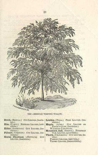 Keywords: Ellwanger and Barry's descriptive catalogue of ornamental trees and shrubs, roses, flowering plants, etc., etc., etc (16436563552).jpg 29 <br> THE AMERICAN WEEPING WILLOW <br> Birch Betula Cut Leaved lascin- <br> iata <br> Elm Ulmus Nettled Leaved urti- <br> cifolia <br> Elder Sambucus Cut Leaved las- <br> ciniata <br> Filbert Corylus Cut Leaved las- <br> ciniata <br> Horse Chestnut sculus Cut <br> Leaved lasciniata <br> Linden Tilia Fern Leaved las- <br> ciniata <br> Maple Acer Cut Leaved or <br> Eagle's Claw lasciniata <br> Wagnerii Lasciniata <br> Mountain Ash Sorbus European <br> Oak Leaved quercifolia <br> Thorn Crataegus Cut Leaved in- <br> cisa <br> Parsley Leaved apii folia <br> Tansey Leaved tanacetifolia 42747616 136502 68419 Page 29 Text http //www biodiversitylibrary org/page/42747616 1868 10 1080/00222930308678875 Ellwanger Barry ; Henry G Gilbert Nursery and Seed Trade Catalog Collection ; Mount Hope Nurseries Biodiversity Heritage Library Ellwanger Barry's descriptive catalogue of ornamental trees and shrubs roses flowering plants etc etc etc Garden Stories Catalogs Ellwanger Barry Nurseries Horticulture Nursery stock Ornamental trees Plants Shrubs U S Department of Agriculture National Agricultural Library bhl page 42747616 dc identifier http //biodiversitylibrary org/page/42747616 American weeping willow bhlGardenStories BHLinbloom ellwanger barry nurseries horticulture u s department of agriculture national agricultural library bhlgardenstories bhlinbloom Information field Flickr posted date ISOdate 2015-02-03 CC-BY-2 0 BioDivLibrary https //flickr com/photos/61021753 N02/16436563552 2015-08-25 01 51 56 cc-by-2 0 PD-old-70-1923 Ellwanger Barry's descriptive catalogue of ornamental trees and shrubs roses flowering plants etc etc etc Photos uploaded from Flickr by Fæ using a script |