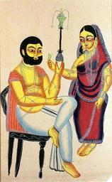 Keywords: Elokeshi is Offering Betel Leaf to the Mahant.jpg en This picture however depicts the scandalous Tarakeshwar Affair of 1873 which concerned the forbidden relationship between a Brahmin priest and Elokeshi the young wife of the Bengali government employee Nabin Chandra Banerjee who took his revenge by severing his wife ™s head with a fish knife Here Elokeshi is shown offering betel leaf an evergreen leaf that is chewed as a stimulant to the priest who is holding a huqqa a hubble-bubble or smoking pipe while seated on a chair The priest has the appearance of a 19th-century Bengali Babu “ a Hindu gentleman who had adopted aspects of European culture “ or an English dandy while Elokeshi is portrayed as a courtesan ~ 1875 http //collections vam ac uk/item/O71297/painting-elokeshi-is-offering-betel-leaf/ author PD-Art Uploaded with UploadWizard Tarakeswar affair Hookahs in art |