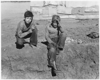 Keywords: Eloy District, Pinal County, Arizona. Cotton pickers, Mexican children, in ditch bank at the edge of . . . - NARA - 522047.jpg Scope and content Full caption reads as follows Eloy District Pinal County Arizona Cotton pickers Mexican children in ditch bank at the edge of grower's camp Boy at left picked 50 pounds of short-staple on preceding day Boy at right picked 25 pounds of Pima long-staple He is 10 years old and when last attended school was in grade 1-A General notes 522047 Local identifier 83-G-41842 Department of Agriculture Bureau of Agricultural Economics Division of Economic Information ca 1922 - ca 1953 NARA-Author Lange Dorothea 1895-1965 Photographer 1372774 <br /> Still Picture Records Section Special Media Archives Services Division NWCS-S National Archives at College Park 8601 Adelphi Road College Park MD 20740-6001 11/1940 Record group Record Group 83 Records of the Bureau of Agricultural Economics 1876 - 1959 Record group ARC 412 Photographic Prints Documenting Programs and Activities of the Bureau of Agricultural Economics and Predecessor Agencies compiled ca 1922 - ca 1947 documenting the period ca 1911 - ca 1947 Series ARC 521048 File unit File unit ARC Variant control numbers NAIL Control Number NWDNS-83-G-41842 Other versions <gallery> File Eloy_District _Pinal_County _Arizona _Cotton_pickers _Mexican_children _in_ditch_bank_at_the_edge_of_ _ _ _-_NARA_-_522047 tif tif File Eloy_District _Pinal_County _Arizona _Cotton_pickers _Mexican_children _in_ditch_bank_at_the_edge_of_ _ _ _-_NARA_-_522047 jpg jpg </gallery> NARA-cooperation PD-USGov Dorothea Lange Eloy Arizona |