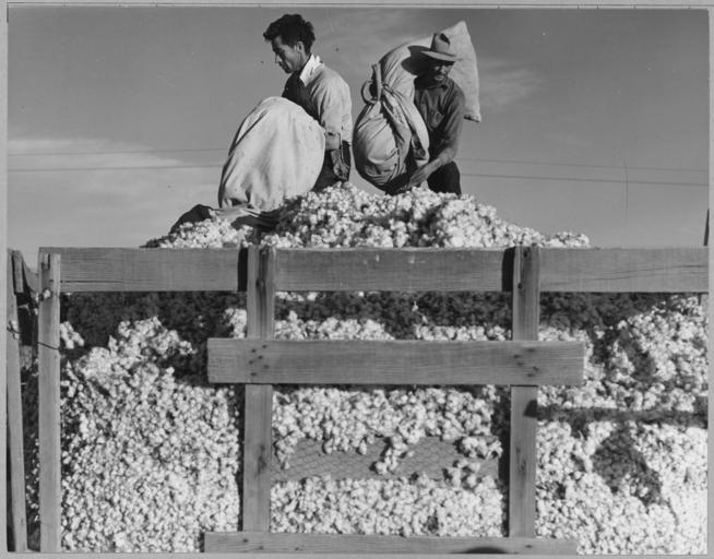 Keywords: Eloy District, Pinal County, Arizona. Migratory cotton pickers dump their sacks into the field wagon . . . - NARA - 522257.jpg Scope and content Full caption reads as follows Eloy District Pinal County Arizona Migratory cotton pickers dump their sacks into the field wagon Wages - 75 per hundred pounds Late afternoon General notes 522257 Local identifier 83-G-44088 Department of Agriculture Bureau of Agricultural Economics Division of Economic Information ca 1922 - ca 1953 NARA-Author Lange Dorothea 1895-1965 Photographer 1372774 <br /> Still Picture Records Section Special Media Archives Services Division NWCS-S National Archives at College Park 8601 Adelphi Road College Park MD 20740-6001 11/1940 Record group Record Group 83 Records of the Bureau of Agricultural Economics 1876 - 1959 Record group ARC 412 Photographic Prints Documenting Programs and Activities of the Bureau of Agricultural Economics and Predecessor Agencies compiled ca 1922 - ca 1947 documenting the period ca 1911 - ca 1947 Series ARC 521048 File unit File unit ARC Variant control numbers NAIL Control Number NWDNS-83-G-44088 Other versions <gallery> File Eloy_District _Pinal_County _Arizona _Migratory_cotton_pickers_dump_their_sacks_into_the_field_wagon_ _ _ _-_NARA_-_522257 tif tif File Eloy_District _Pinal_County _Arizona _Migratory_cotton_pickers_dump_their_sacks_into_the_field_wagon_ _ _ _-_NARA_-_522257 jpg jpg </gallery> NARA-cooperation PD-USGov Dorothea Lange Eloy Arizona Farms in Arizona Cotton sacks Agricultural vehicles Wagons in the United States 1940 in Arizona November 1940 in the United States Agricultural workers |