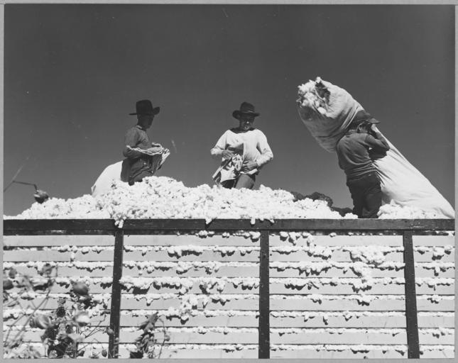 | Keywords: Eloy District, Pinal County, Arizona. Migratory cotton pickers dump their sacks into the field wagon . . . - NARA - 522249.jpg Scope and content Full caption reads as follows Eloy District Pinal County Arizona Migratory cotton pickers dump their sacks into the field wagon Wages - 75 per hundred pounds Late afternoon General notes 522249 Local identifier 83-G-44080 Department of Agriculture Bureau of Agricultural Economics Division of Economic Information ca 1922 - ca 1953 NARA-Author Lange Dorothea 1895-1965 Photographer 1372774 <br /> Still Picture Records Section Special Media Archives Services Division NWCS-S National Archives at College Park 8601 Adelphi Road College Park MD 20740-6001 11/1940 Record group Record Group 83 Records of the Bureau of Agricultural Economics 1876 - 1959 Record group ARC 412 Photographic Prints Documenting Programs and Activities of the Bureau of Agricultural Economics and Predecessor Agencies compiled ca 1922 - ca 1947 documenting the period ca 1911 - ca 1947 Series ARC 521048 File unit File unit ARC Variant control numbers NAIL Control Number NWDNS-83-G-44080 Other versions <gallery> File Eloy_District _Pinal_County _Arizona _Migratory_cotton_pickers_dump_their_sacks_into_the_field_wagon_ _ _ _-_NARA_-_522249 tif tif File Eloy_District _Pinal_County _Arizona _Migratory_cotton_pickers_dump_their_sacks_into_the_field_wagon_ _ _ _-_NARA_-_522249 jpg jpg </gallery> NARA-cooperation PD-USGov Dorothea Lange Eloy Arizona 1940 in Arizona November 1940 in the United States Cotton sacks Wagons in the United States Agricultural transport Agricultural workers Men at work in the United States Wages in the United States |