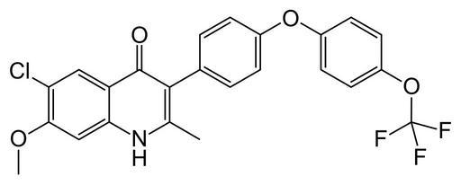 Keywords: ELQ-300.svg Skeletal formula of ELQ-300 6-chloro-7-methoxy-2-methyl-3- 4-4- trifluoromethoxy phenoxyphenyl quinolin-4 1H -one Created using http //www acdlabs com/download/chemsk html ACD/ChemSketch 12 0 and Inkscape Optimized with vim Own work after http //www google com/patents/US20120010237 US patent application 20120010237 2013-03-20 Fvasconcellos Quinolones Antimalarial agents Trifluoromethyl ethers |