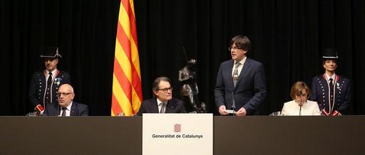 Keywords: Els presidents Mas i Puigdemont en l'acte de presa de possessió.jpg ca Els presidents Mas i Puigdemont en l'acte de presa de possessió 2016-01-12 19 30 00 http //premsa gencat cat/pres_fsvp/AppJava/notapremsavw/290123/ca/president-puigdemont-comprometo-treballar-explicar-implicar-preparar-garantir-estabilitzar-asserenar do Generalitat de Catalunya other versions cc-zero Carles Puigdemont in 2016 Artur Mas in 2016 Carme Forcadell in 2016 Jordi Baiget |