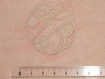 | Keywords: Embroidered letters HB.jpg en Embroidered letters H B in the corner of a napkin France fr Lettres brodées H B dans un angle de serviette de table France own Tangopaso ~ 1940 Embroidery of France Textile napkins Monograms HB HB letter combinations Monogram embroidered |