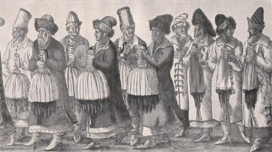 Keywords: Emil Brass, Im Reiche der Pelze, 2. Auflage, 1925, Seite 145, Russische Gesandtschaft des Zaren Iwan an den deutschen Kaiser, die als Geschenk Zobel- und Nerzfelle überbringt, 15. Jh.jpg Template Emil Brass 1856; +1938 Aus dem Reiche der Pelze 2 Auflage 1925 Aus dem Reiche der Pelze von Emil Brass x1925-145 Russian embassy 1576 engraving Russian embassy 1576 engraving page 2-3 Fur fashion in 1576 Other Version <gallery>Russian embassy 1576 engraving page 2 - detail jpg</gallery> |