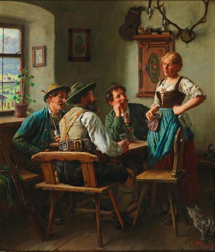 Keywords: Emil Rau In der Wirtsstube 1912.jpg In der Wirtsstube signiert datiert und bezeichnet E Rau München 19 12 Öl auf Leinwand 80 x 68 5 cm http //www dorotheum com/ 1912 Creator Emil Rau PD-old-auto-1923 1937 Images from Dorotheum 1912 paintings Tracht in art Paintings of waitresses Taverns in art Taken with Hasselblad H5D-40 |