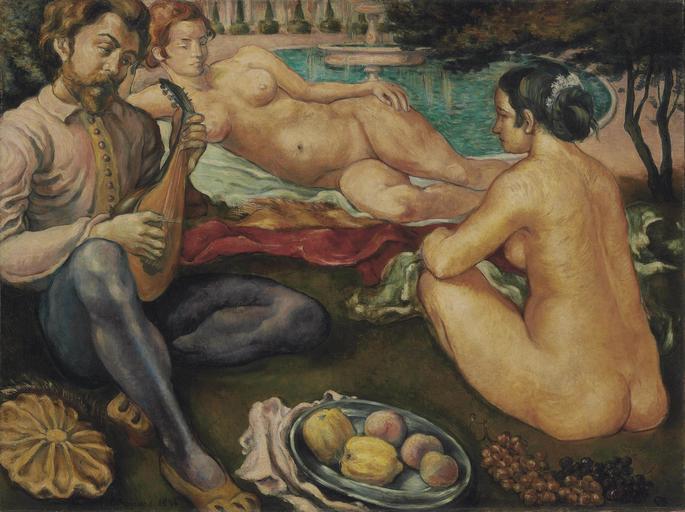 Keywords: Émile Bernard Cour d'amour 1890.jpg Cour d'amour Signed and dated E Bernard 1890 Oil on canvas 88 9 x 119 4 cm Christie's online 5493043 1890 Creator Émile Bernard PD-old-auto 1941 Paintings by Émile Bernard 1890 paintings Picnics in art Lutenists in art Paintings of nude women sitting on the ground outdoors Paintings of nude recumbent women on the ground outdoors Parks in art |