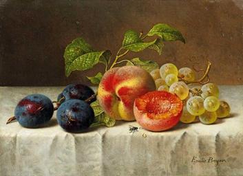 Keywords: Emilie Preyer - Stillleben mit Pfirsichen, Pflaumen und Weintraube.jpg Artwork Creator Emilie Preyer de Stillleben mit Pfirsichen Pflaumen und Weintrauben oil canvas cm 19 26 5 object history signed 'Emilie Preyer' lower right http //www arcadja com/auctions/de/private/preyer_emilie/kunstwerken/23441/0/ Kunsthaus Lempertz via ARCADJA auction results other versions PD-old-auto-1923 1930 Emilie Preyer 19th-century still life paintings Still life paintings of fruits Images from Kunsthaus Lempertz |