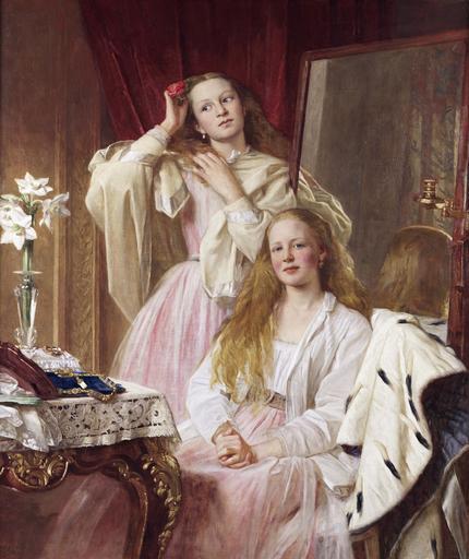 Keywords: Emma and Federica Bankes of Soughton Hall, by Henry Tanworth Wells.jpg en Emma and Federica Bankes daughters of Edward Bankes who was the brother of William John Bankes 1786 - 1855 oil canvas cm 145 5 122 signed l l Henry T Wells / 1869 http //www bonhams com/auctions/20485/lot/48/ Bonhams creator Henry Tanworth Wells 1869 PD-old-100-1923 Soughton Hall Henry Tanworth Wells 1869 Bankes family Emma Ermine clothing in art Images from Bonhams People with mirrors in art Portrait paintings of sisters Fur fashion in 1869 |