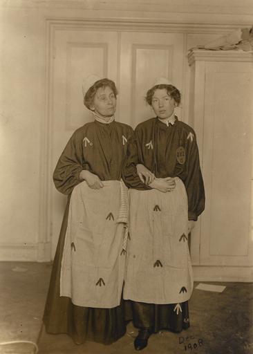 Keywords: the women's library thewomenslibrary women suffrage politics hires monochrome indoor 7JCC/O/02/070 Photograph, printed, paper, monochrome, Emmeline and Christabel Pankhurst standing arm in arm, dressed in mock prison garb; manuscript inscription on reverse 'Mrs and Miss Pankhurst. Return this original to design', printed 'Copyright photo. Fee due to Topical Press 10 & 11 Red Lion Court, Fleet Street, London EC' 7JCC/O/02/070 Photograph, printed, paper, monochrome, Emmeline and Christabel Pankhurst standing arm in arm, dressed in mock prison garb; manuscript inscription on reverse 'Mrs and Miss Pankhurst. Return this original to design', printed 'Copyright photo. Fee due to Topical Press 10 & 11 Red Lion Court, Fleet Street, London EC' |
