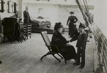 Keywords: the women's library thewomenslibrary women suffrage politics hires monochrome 7JCC/O/02/084 Photograph, printed, paper, monochrome, Emmeline Pankhurst seated in a deck chair, talking to a small boy in a sailor suit; printed inscription on reverse 'This photograph is the copyright of the Daily Mirror, 28-29 Bouverie Street, London EC, and must not be reproduced in any way without permission. When ordering further copies please refer to P7763' 7JCC/O/02/084 Photograph, printed, paper, monochrome, Emmeline Pankhurst seated in a deck chair, talking to a small boy in a sailor suit; printed inscription on reverse 'This photograph is the copyright of the Daily Mirror, 28-29 Bouverie Street, London EC, and must not be reproduced in any way without permission. When ordering further copies please refer to P7763' |