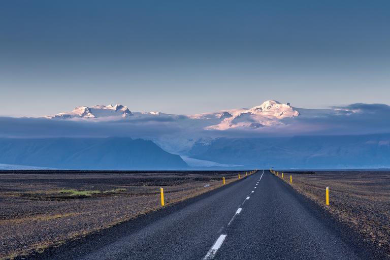 Keywords: iceland winter isolated driving cold travel mountains infinity horizon hills ice clouds flat wilderness blue long empty sky snow journey road landscape