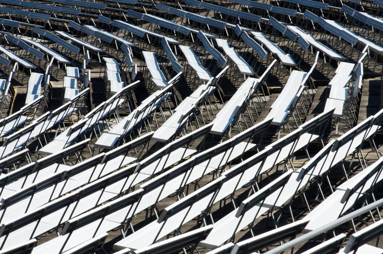 Keywords: empty seats theatre outdoors auditorium halls seating arrangements arranged group white bright sunny day sunlight show entertainment presentation concert events