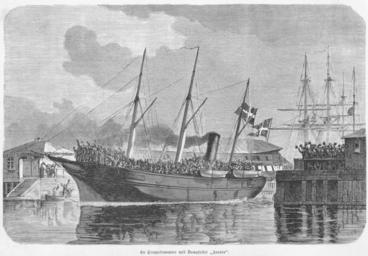 Keywords: En Troppetransport med Dampskibet Aurora.png En Troppetransport med Dampskibet Aurora 30 November 1863 Samtidig illustration af krigen i 1864 A Danish troop transport with the steamship Aurora 30 November 1863 Contemporary illustration of the 1864 German-Danish War da To hundrede Træsnit Tegninger fra Krigen i Danmark 1864 Forlagsbureauet i Kjøbenhavn G E C Gad Gyldendalske Boghandel C C Lose Delbanco Thieles Bogtrykkeri 1864 Denne illustration optræder på side 6 Egen indscanning en To hundrede Træsnit Tegninger fra Krigen i Danmark 1864 Forlagsbureauet i Kjøbenhavn G E C Gad Gyldendalske Boghandel C C Lose Delbanco Thieles Bogtrykkeri 1864 This illustration appears on page 6 Own scan 1863 da Denne bog er en samling af illustrationer tegnet af i alt 18 forskellige kunstnere Dette billede er tegnet af Carl Neumann 1833-1891 http //www kulturarv dk/kid/VisKunstner do kunstnerId 2465 Første gang aftrykt i Illustreret Tidende nr 219 6/12-1863 side 377 http //illustrerettidende dk/iti_pub/cv/main/HaefteSide xsql nnoc iti_pub p_AargangNr 5 p_HaefteNr 219 p_SideNr 77 Ophavsmanden døde for mere end 70 år siden og ophavsretten er derfor udløbet en This book is a compilation of illustrations by 18 different artists This image was created by Carl Neumann 1833-1891 http //www kulturarv dk/kid/VisKunstner do kunstnerId 2465 First printed in Illustreret Tidende No 219 6 December 1863 page 377 http //illustrerettidende dk/iti_pub/cv/main/HaefteSide xsql nnoc iti_pub p_AargangNr 5 p_HaefteNr 219 p_SideNr 77 The author of this illustration died more than 70 years ago and this image is consequently in the Public Domain PD-old Second Schleswig War Naval ships of Denmark 1800-1899 Illustreret Tidende To Hundrede Træsnit Tegninger fra Krigen i Danmark 1864 |