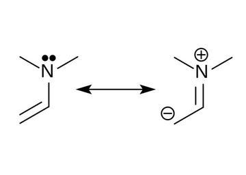 Keywords: Enamine resonance.svg en Resonance forms of the enamin fuctional group Own Fabiuccio 2008-12-10 Functional groups Enamines Mesomerism